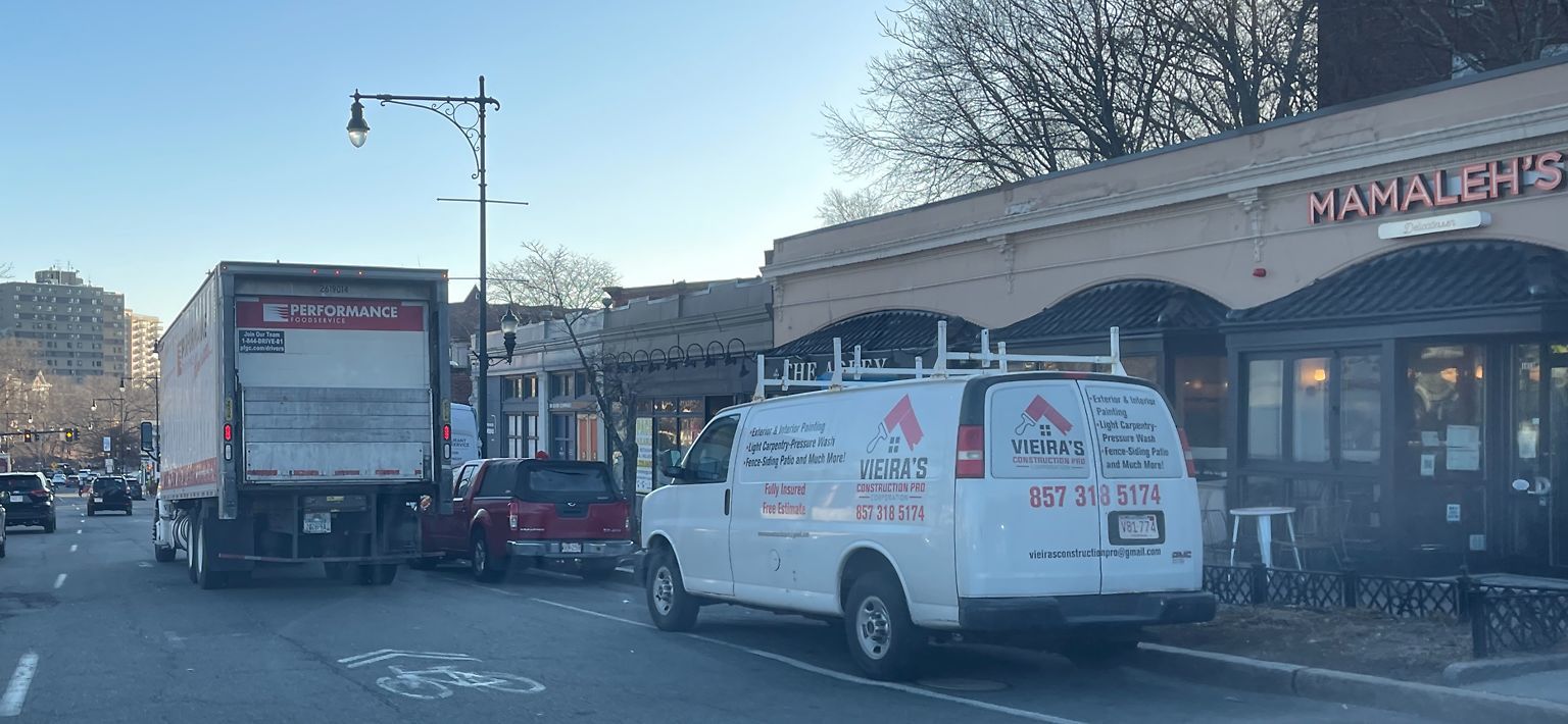 Vehicles continue to park in the bike lane on Beacon St. during morning dropoff and afternoon pickup times to Driscoll School