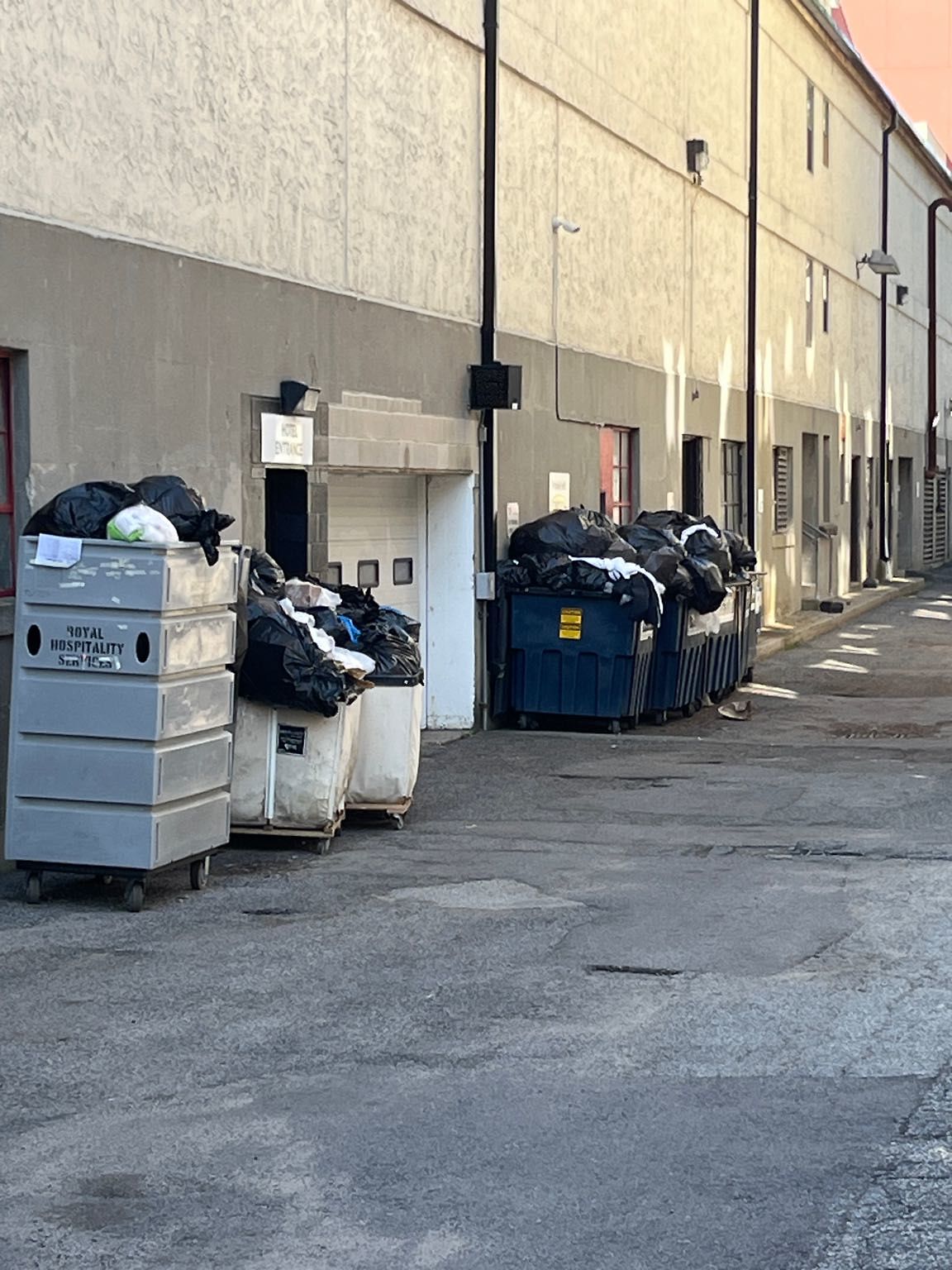 Overflowing trash out since Saturday afternoon in wrong trash receptacles. As a result, more rodents