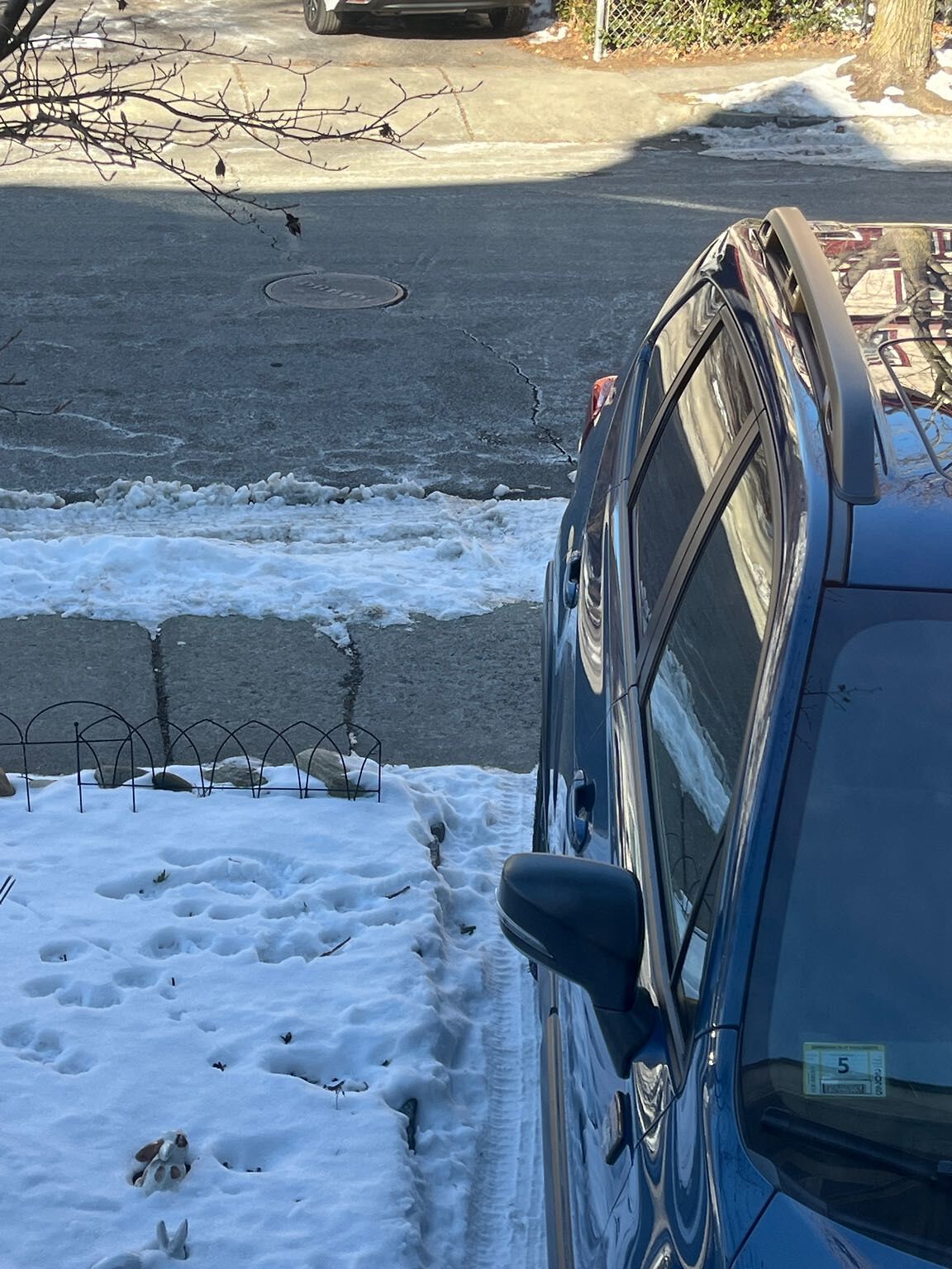 Man hole cover catches on the snow plow and makes a collision crashing sound