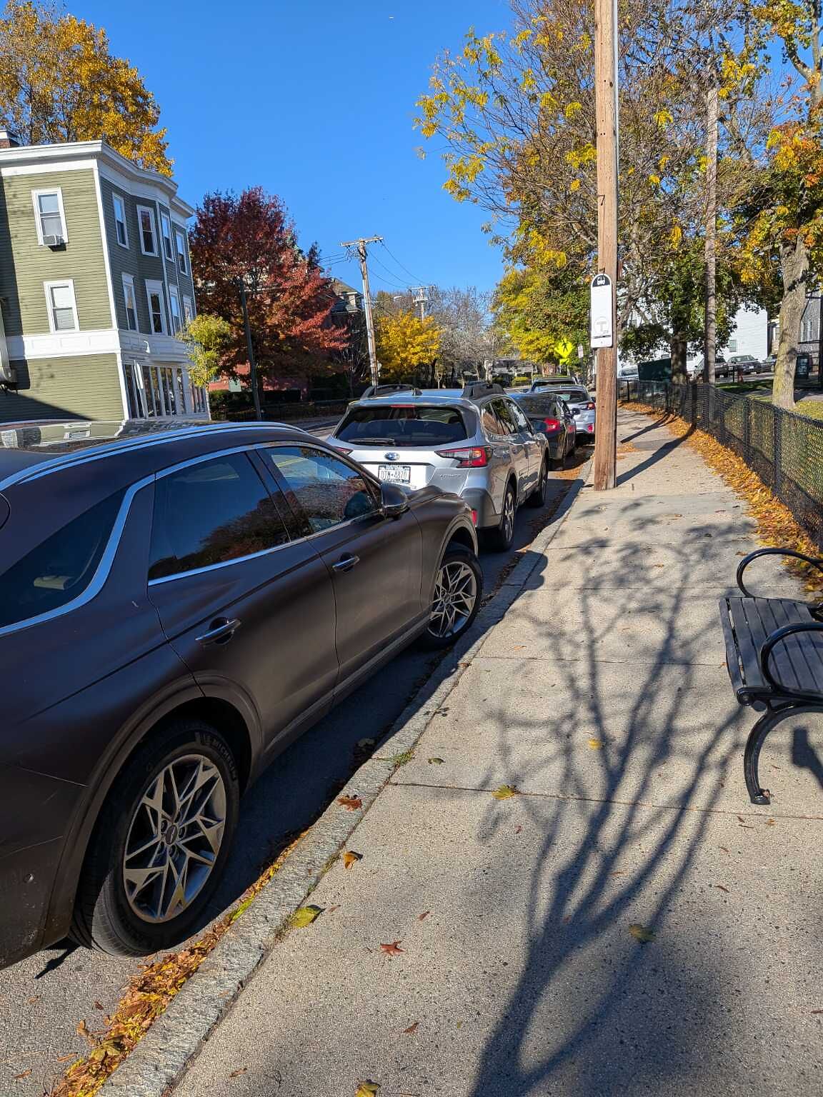 Every single Saturday since the start of October the parents of kids at the soccer program park in the bus stop. You need to speak with the people running the camp about this.