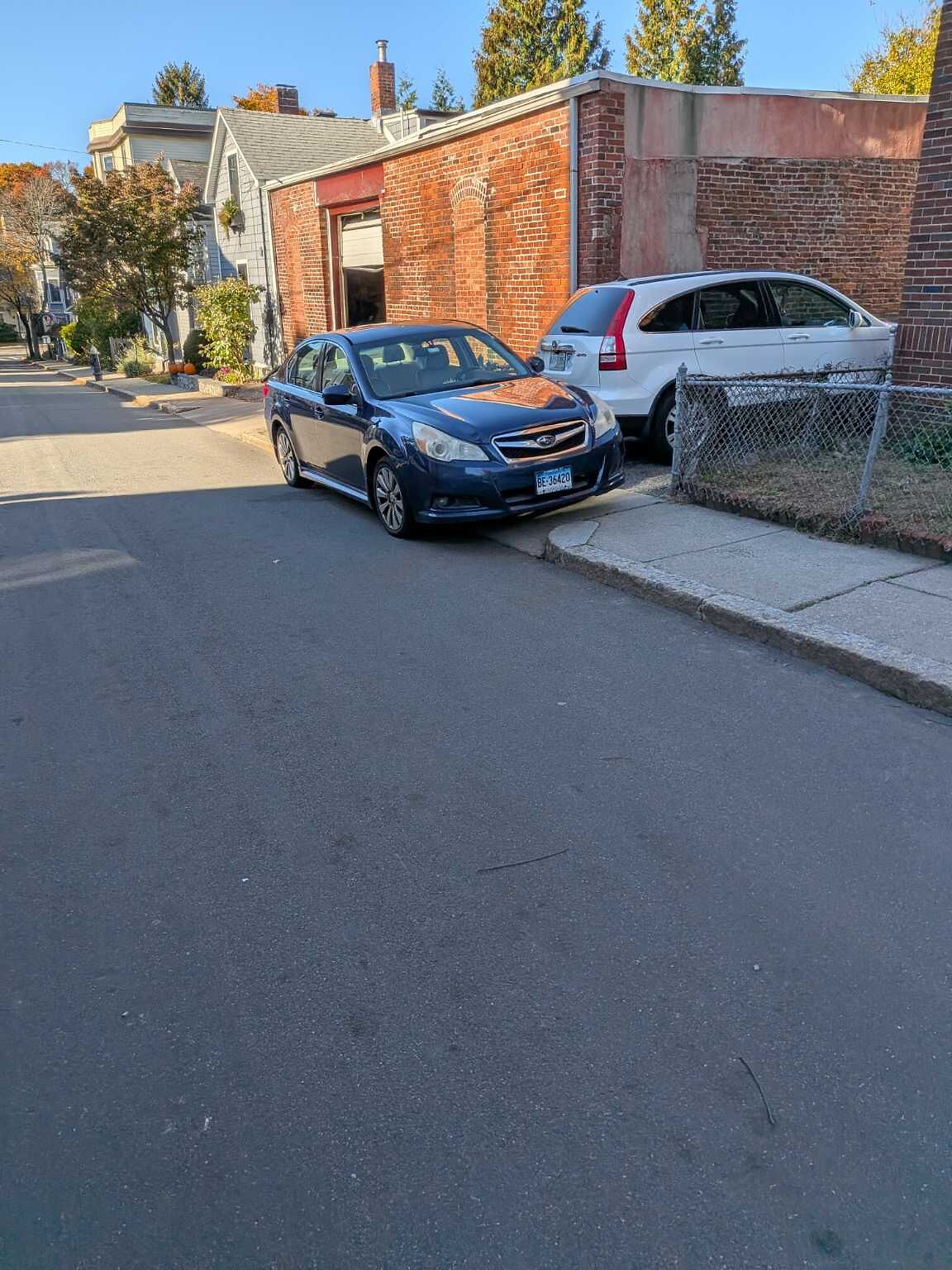Parked overnight, parked on the sidewalk, out of state car. Well done. Tow it