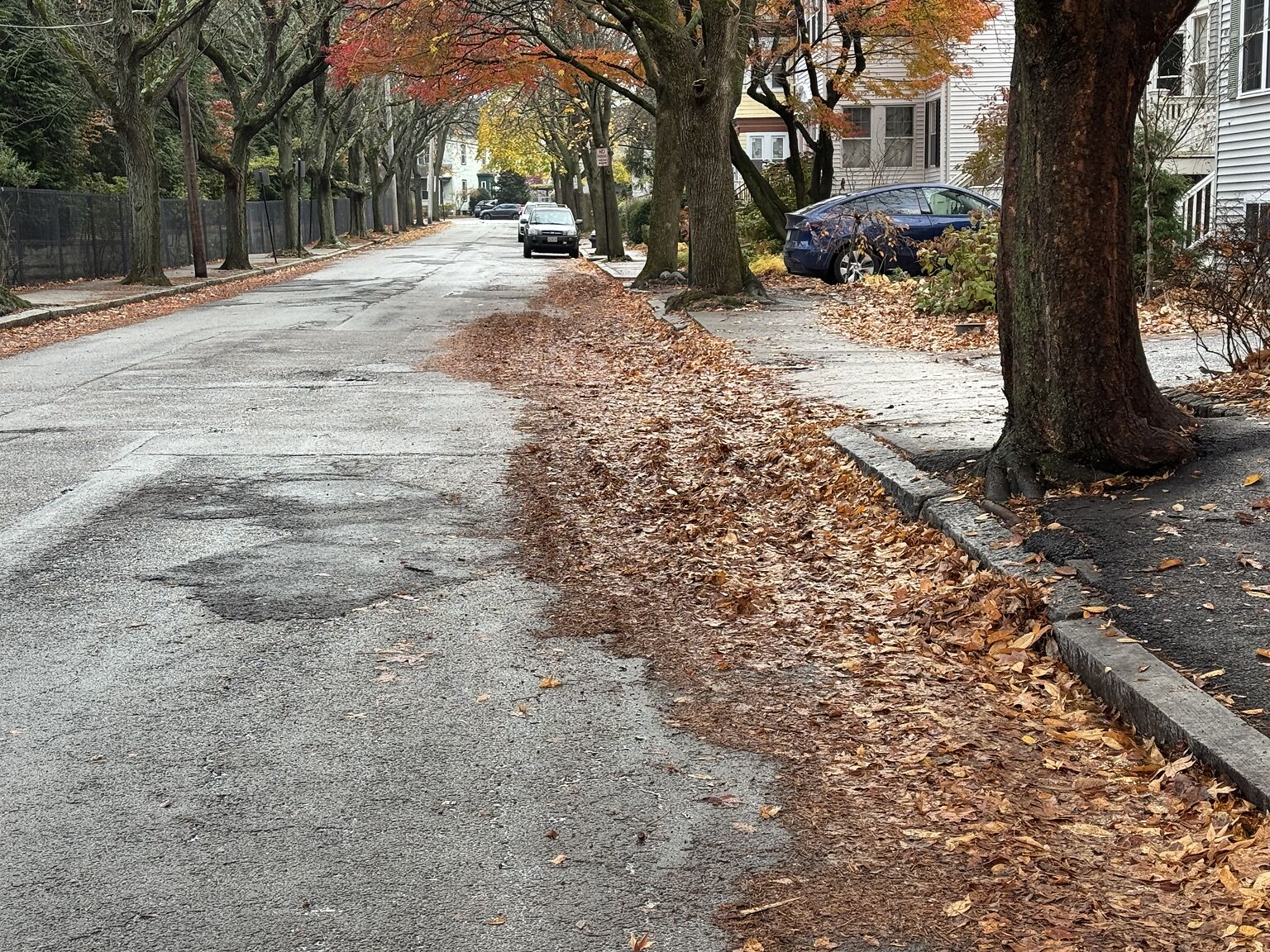 Needs street cleaning, a lot of wet leaves on the street make the street slippery.