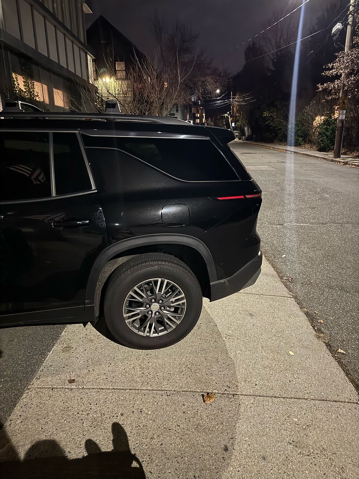 Car parked across sidewalk. Very inconsiderate, not to mention illegal. Please ticket.