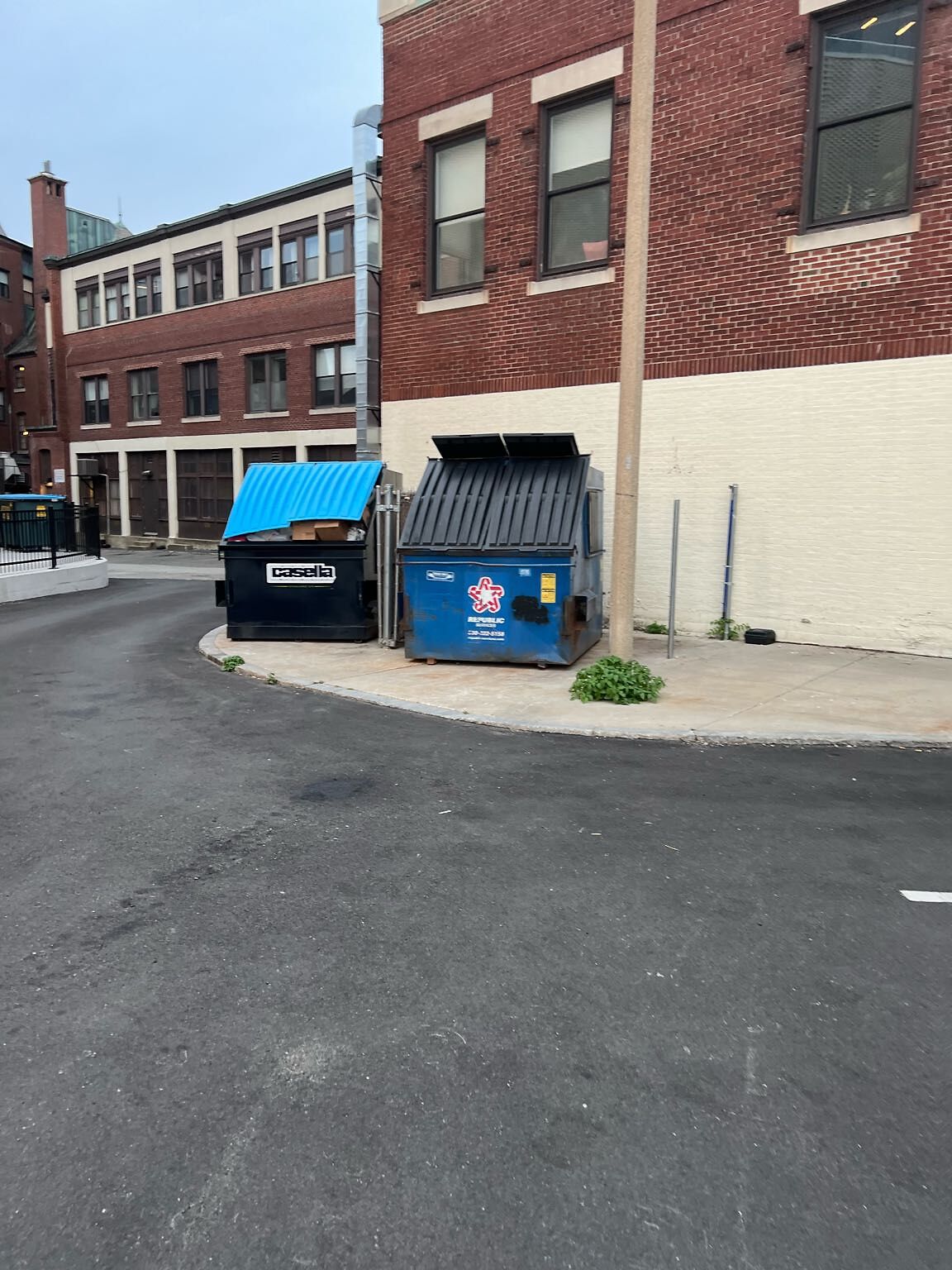 Movie theater dumpster is overfull and we saw a rat skittering away in broad daylight