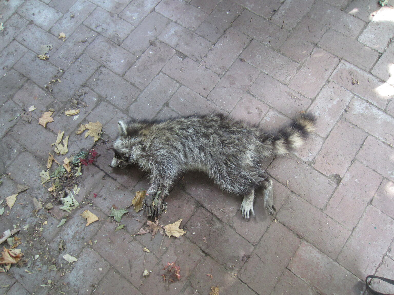 On our property: 3 days ago, dead Blue Jay 2 days ago, dead rat. Today, dead Racoon What to do with Racoon carcass. Have Blue Jay in a zip lock bag. Please respond asap. Myron Tupa
