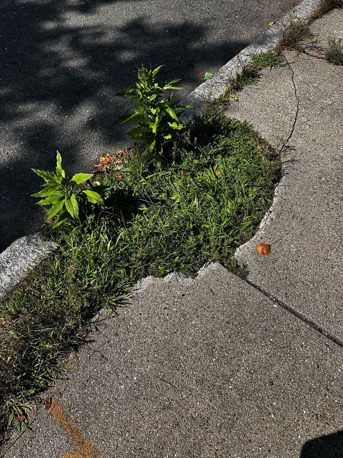 Fell due to sidewalk wearing away. Hit my left knee (bleeding) and landed on my left wrist (? Injury?).