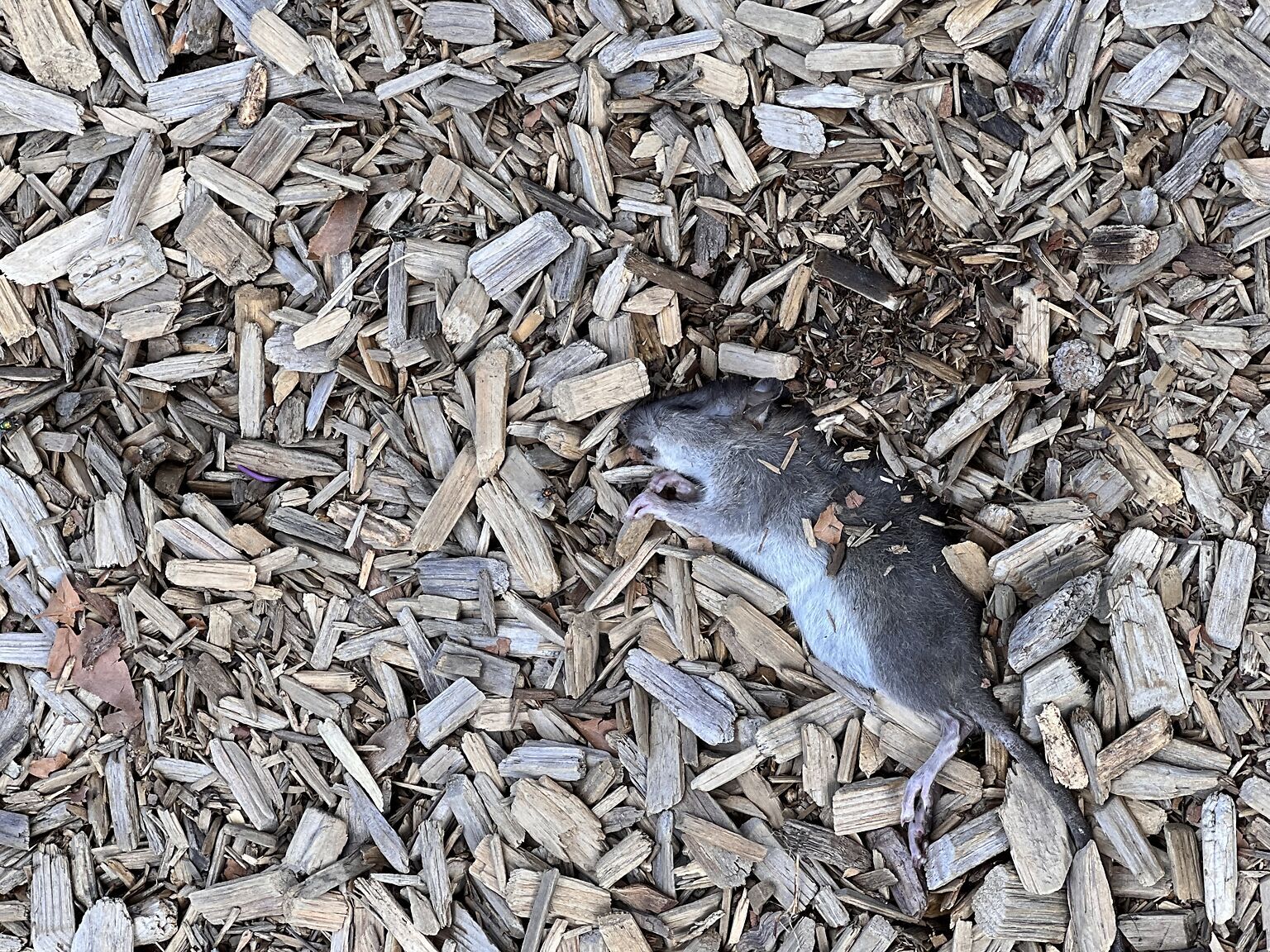 Dead rat in Pierce playground- the one for smaller children. It is on the side of the play structure closest to the road. Saw it today, 8/30 around 3pm, in the wood chips.