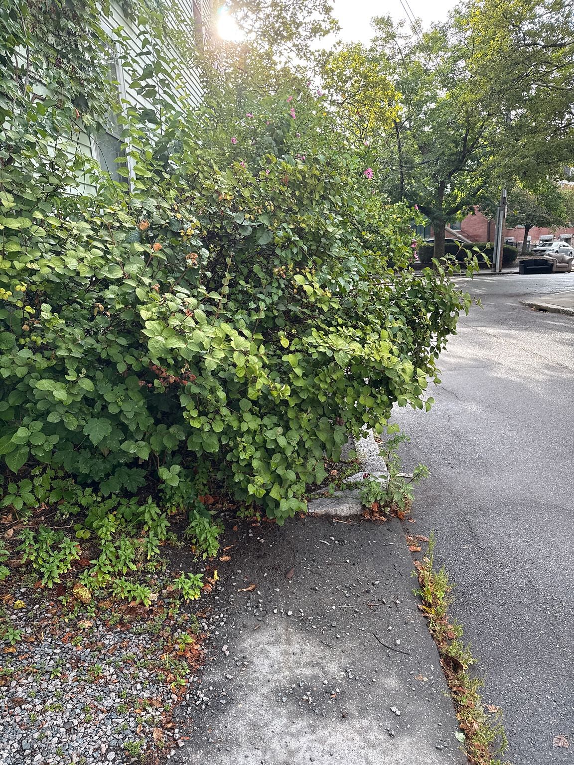 Your request has been received and is currently pending investigation by the Highway/Sanitation Department. Upon investigation, if the site has a sidewalk obstruction the property owner will be notified and will have 21 days to address the issue, per Town Sidewalk Obstruction Regulations. After those 21 days the location will be reviewed again. To follow up on your request, please email dpwenforcement@brooklinema.gov. -