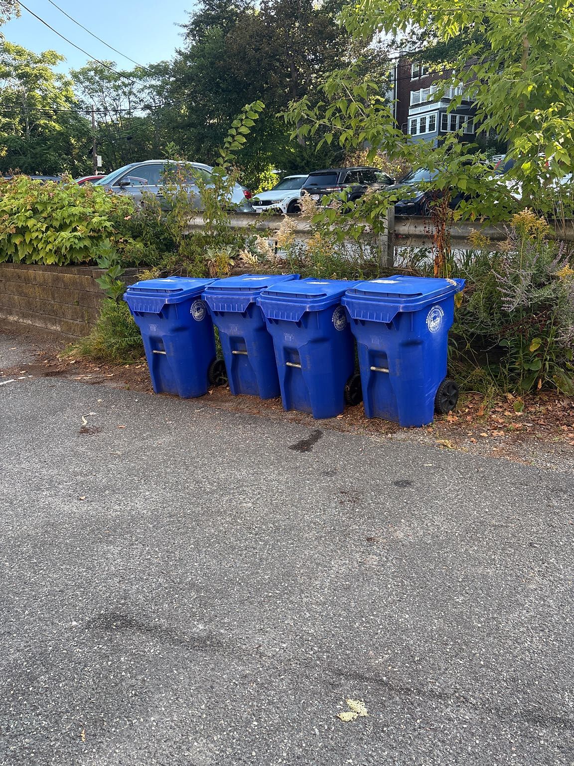 The recycle bins in the Rawson Rd parking lot were not picked up on Wednesday