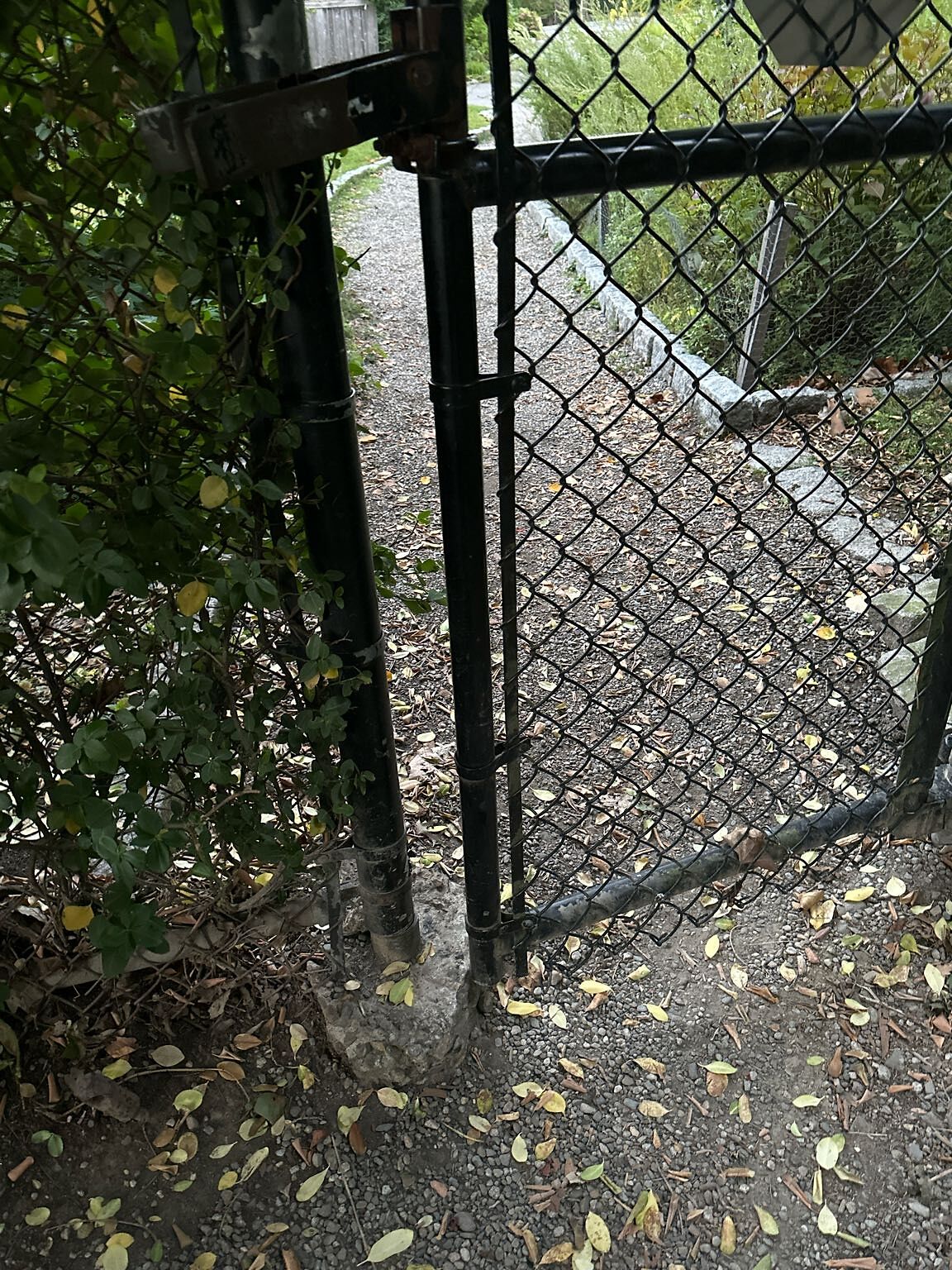 Back gat to park boated, gate bottom hits cement pylon so it won't close