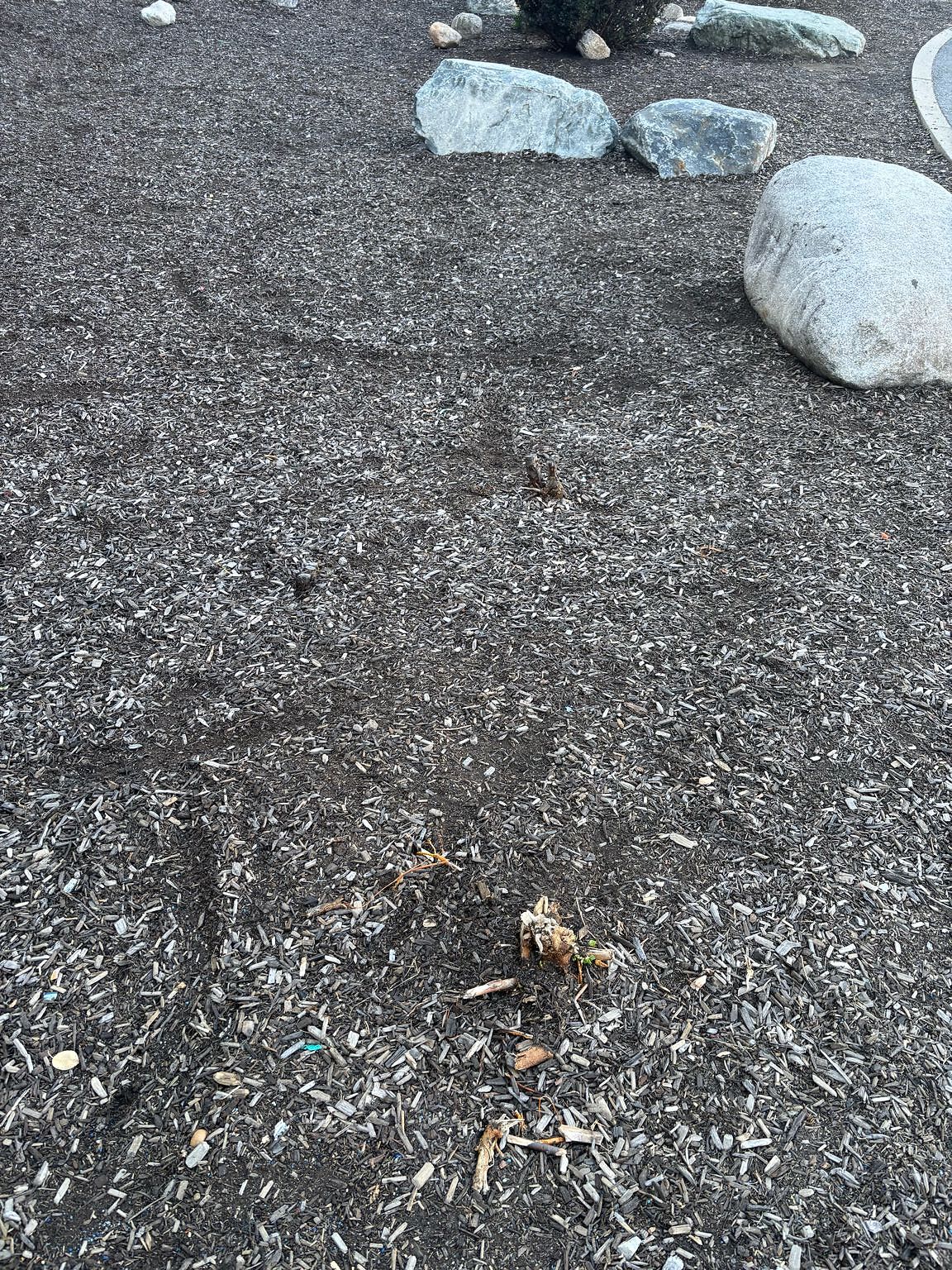 Stumps of shrubs left at perfect tripping/injury height by the rocks at Ridley playground. They are hard to see and kids trip on them please cut flush.