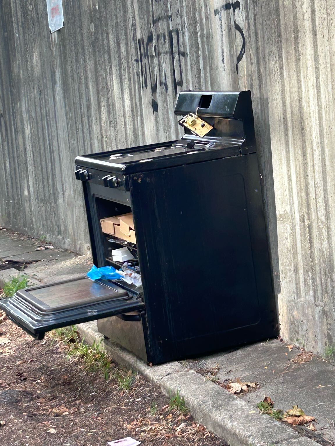 Abandoned stove for 3 days. Blocking sidewalk close to star market parking lot. Please remove or ask Star Market to remove