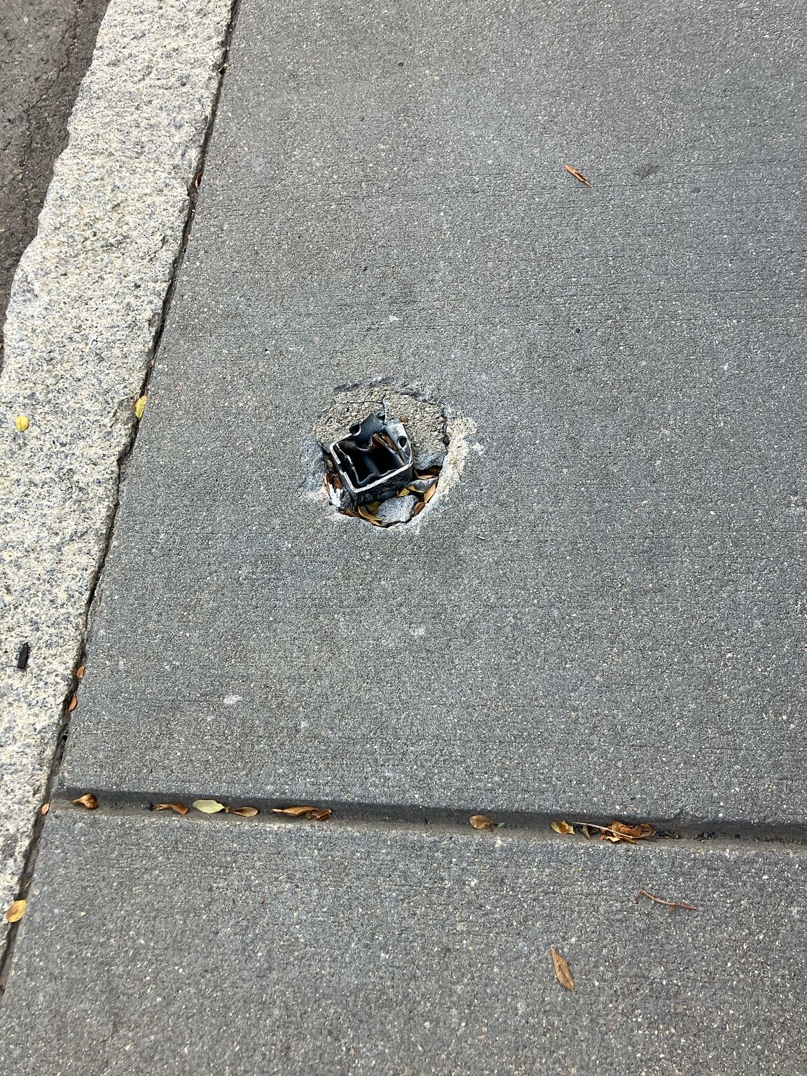 This is a tripping hazard, and should be removed or made safer somehow. (I did not see an appropriate category for reporting this. )