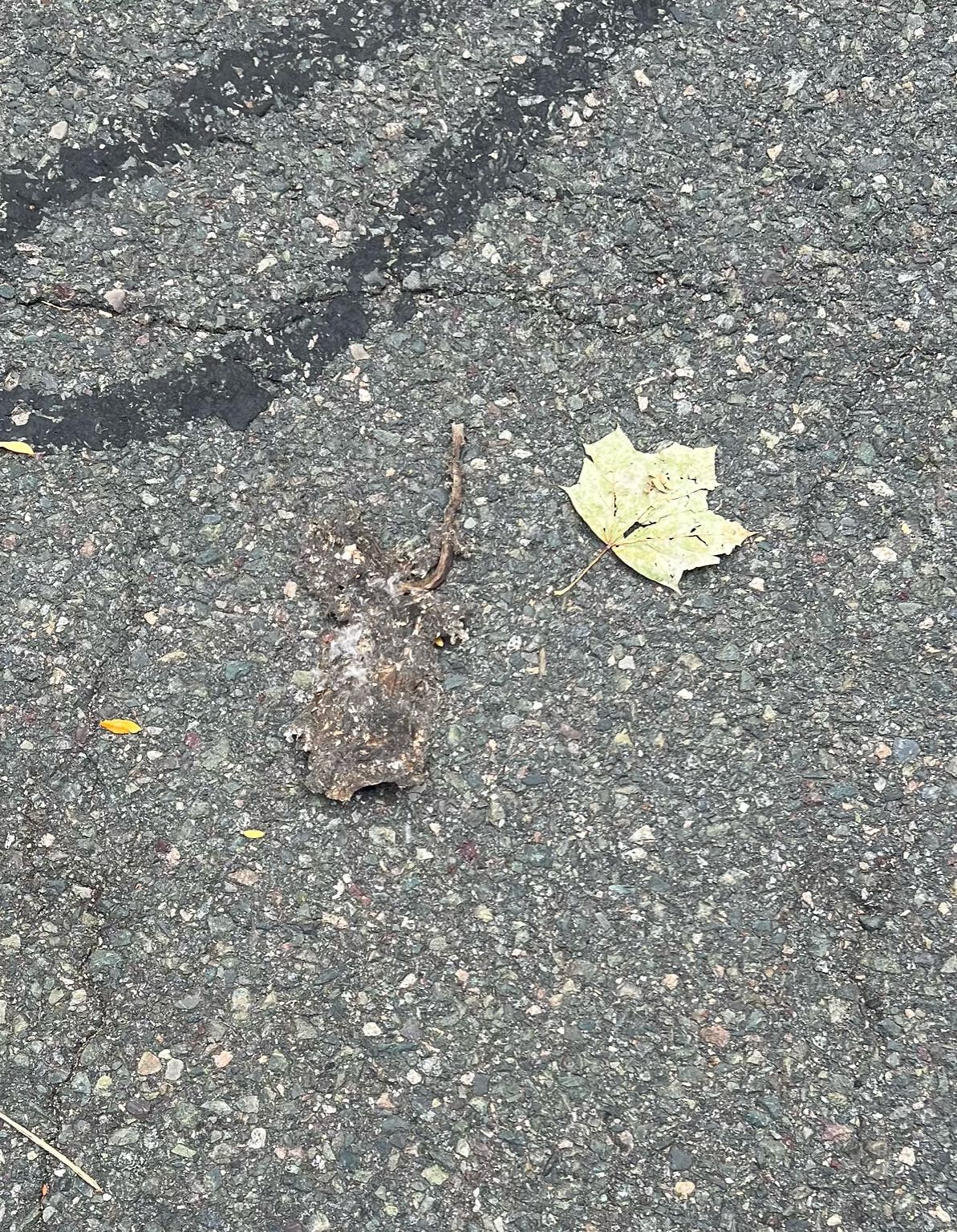 This is a dead rat that's been in the road for over a week and some children have been playing with it by throwing it around by its tail