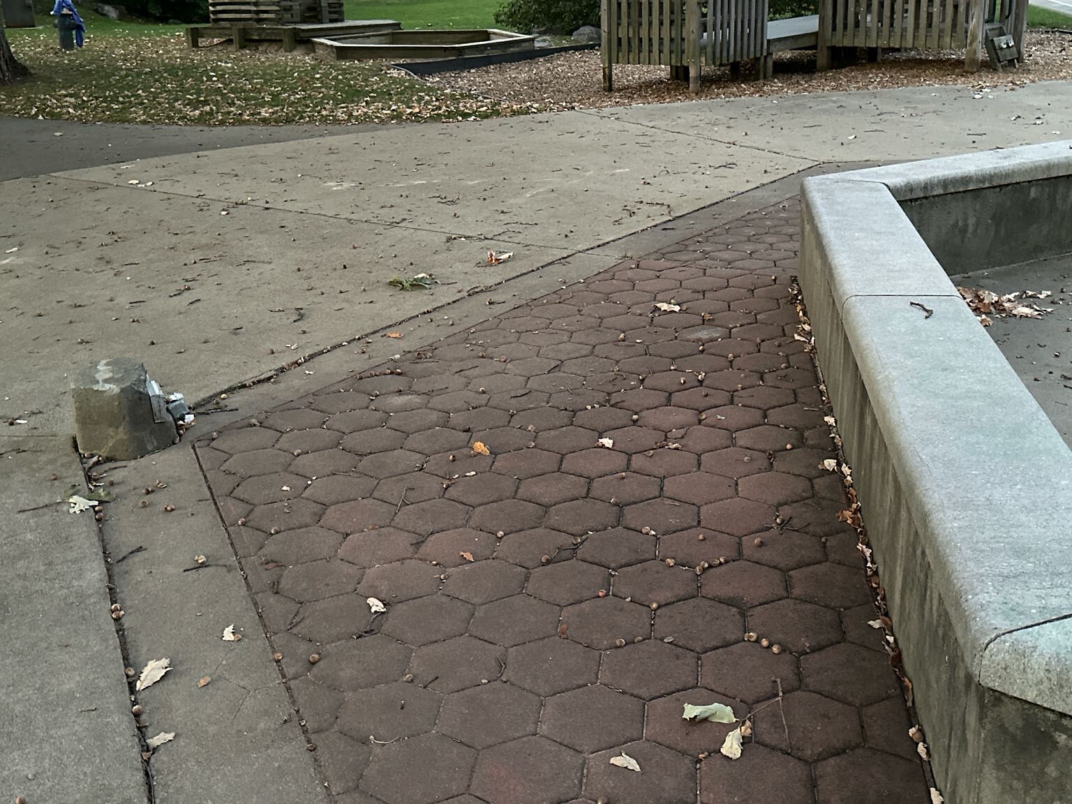 The control box for fountain, set in a concrete small pillar and an attached wood box, has been vandalized and smashed. There are exposed wires. Someone is going to get fried. Please fix...