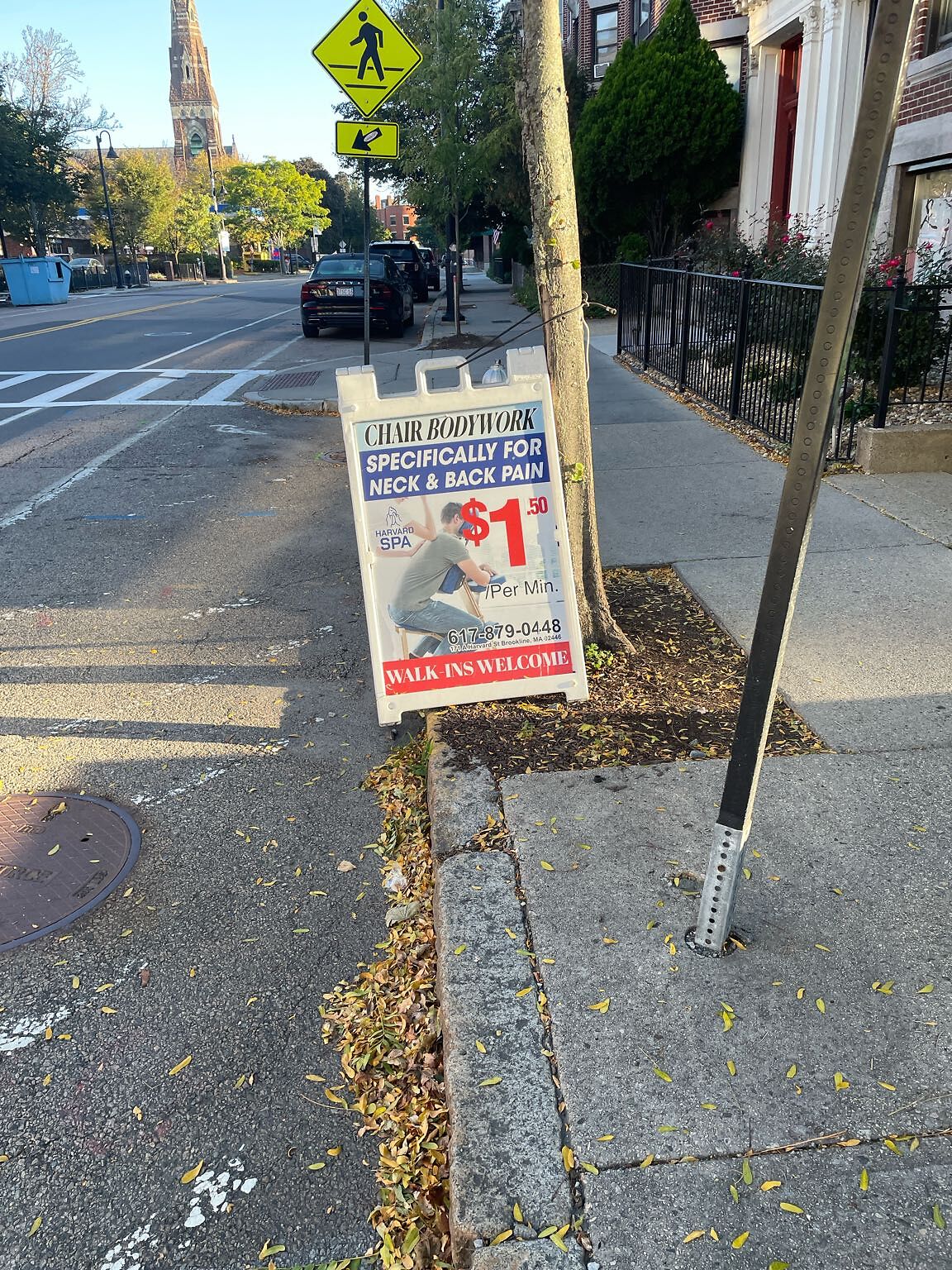 multiple request to have this sign removed. it's chained to a public tree. these kinds signs not legal in Brookline anywhere
