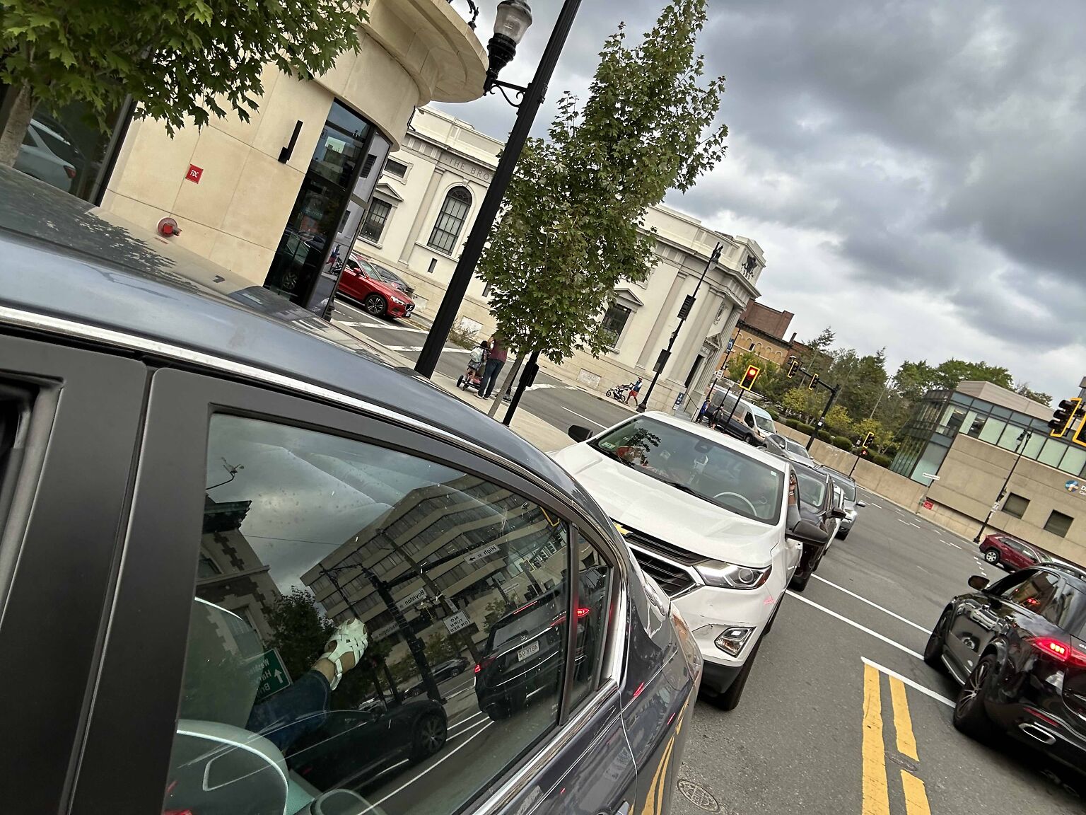 The light timing of Walnut St and Route 9 lights on Washington St/High St - southbound cars get green on first light and not the next and wind up blocking Rt 9. Can't see it til you come round