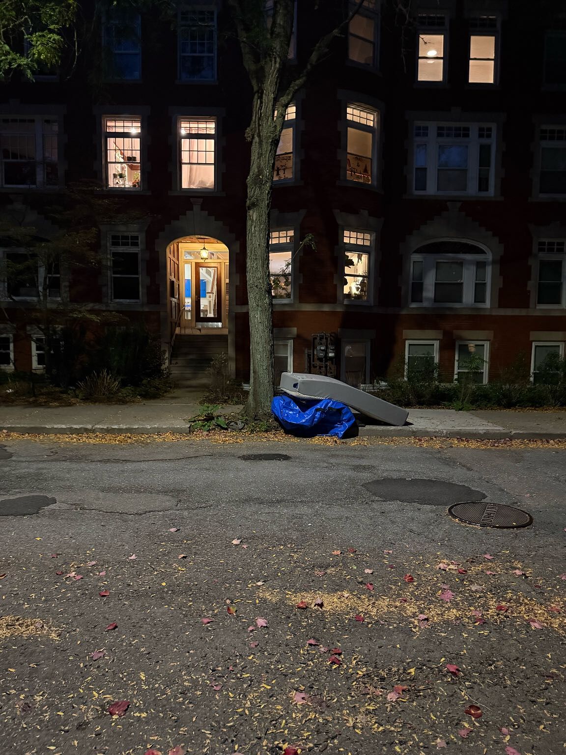 This mattes and blue material have been sitting on the curb between 9 & 7 Strathmore Road since early September. Just wondering why it's still there