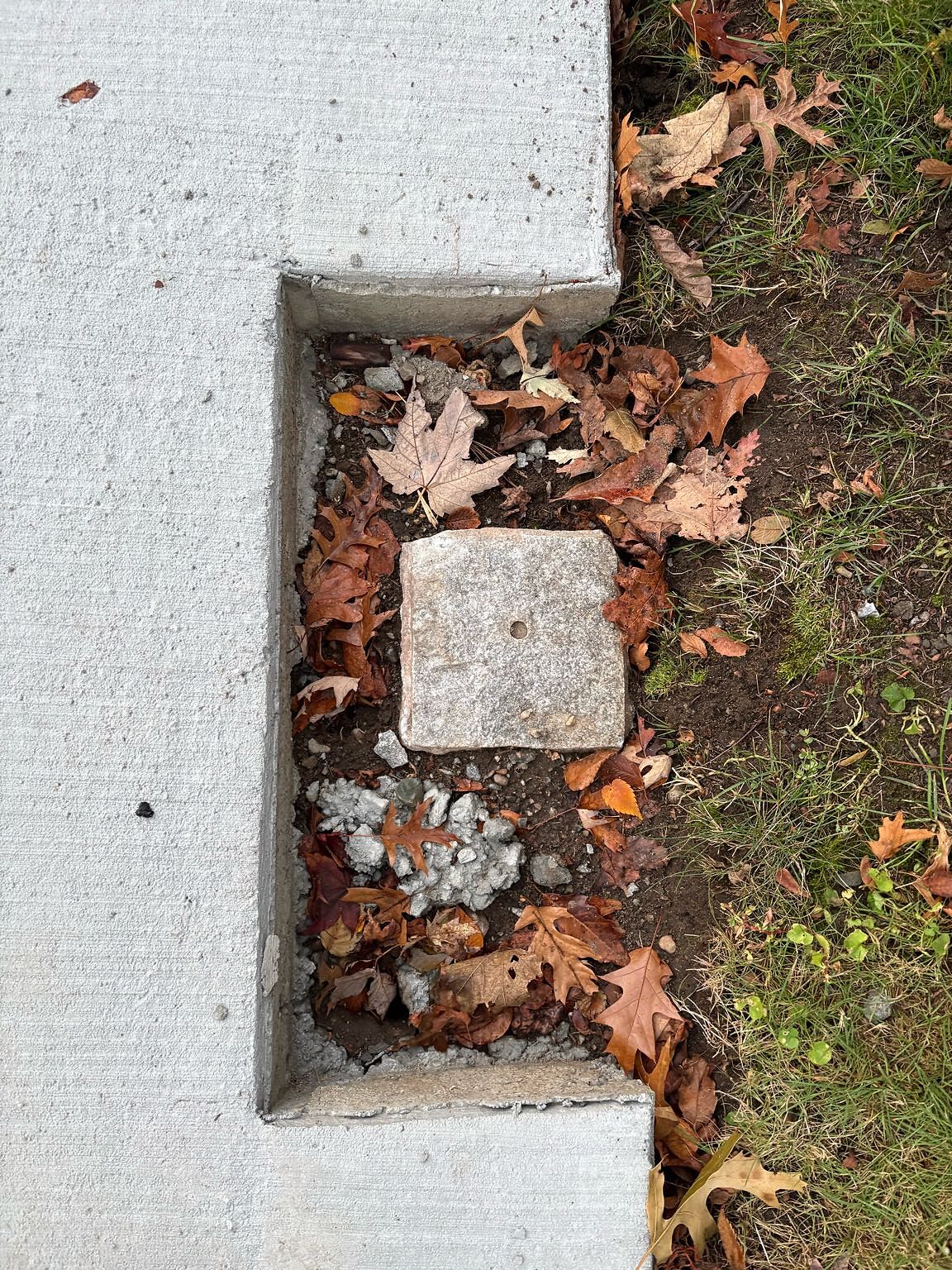 During sidewalk reconstruction this boundary marker was uncovered. It was damaged by a Town sidewalk plow a few years ago. The marker needs to be restored as part of the sidewalk project.