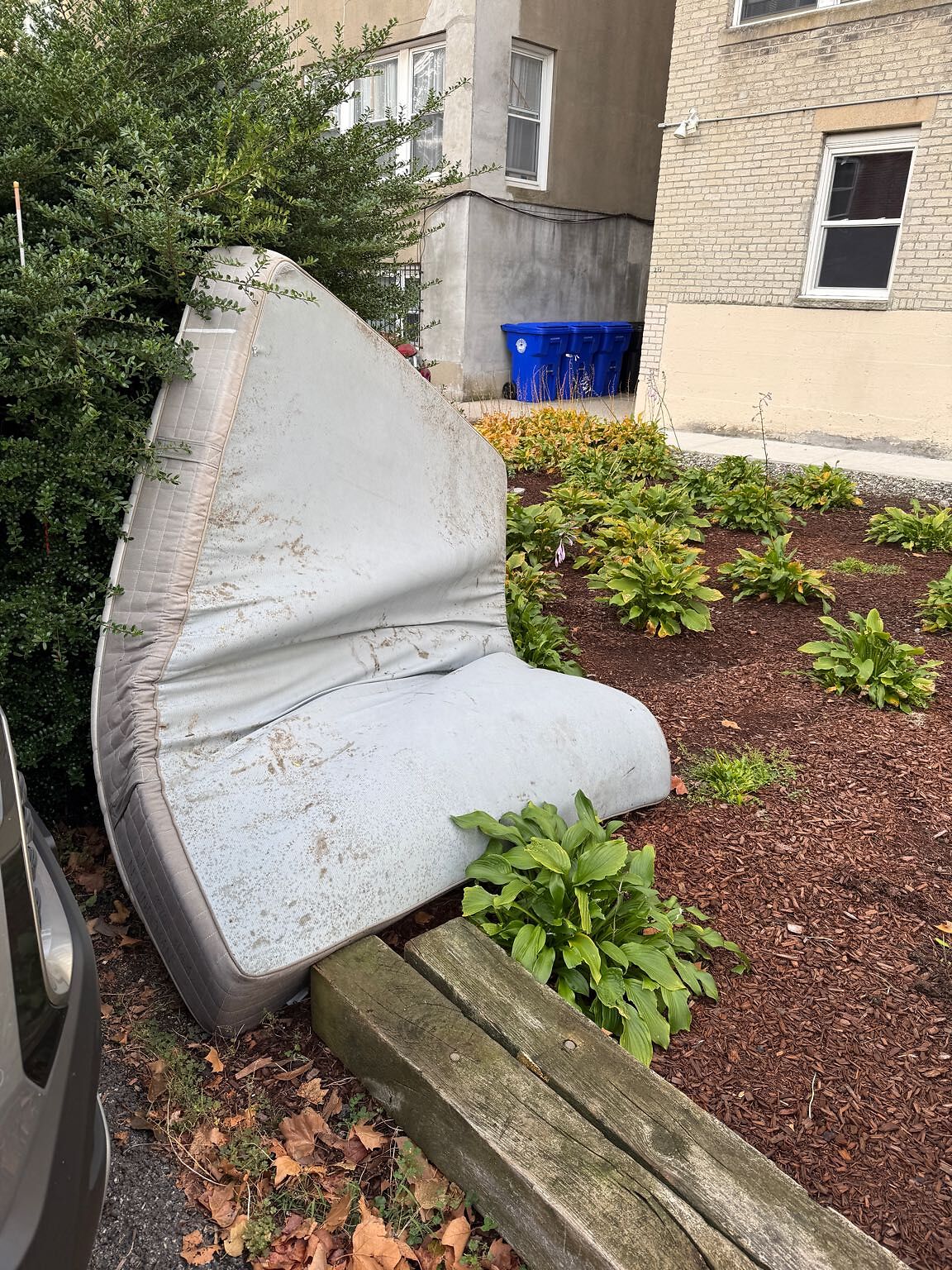 Yuck yuck. This mattress has been in the yard since September 1 and is attracting pests and starting to get moldy.