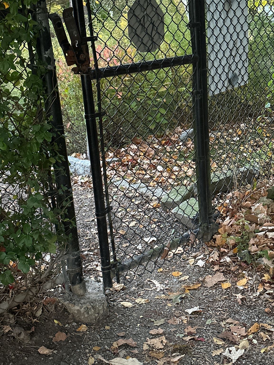 Cement pile blocks gate from closing