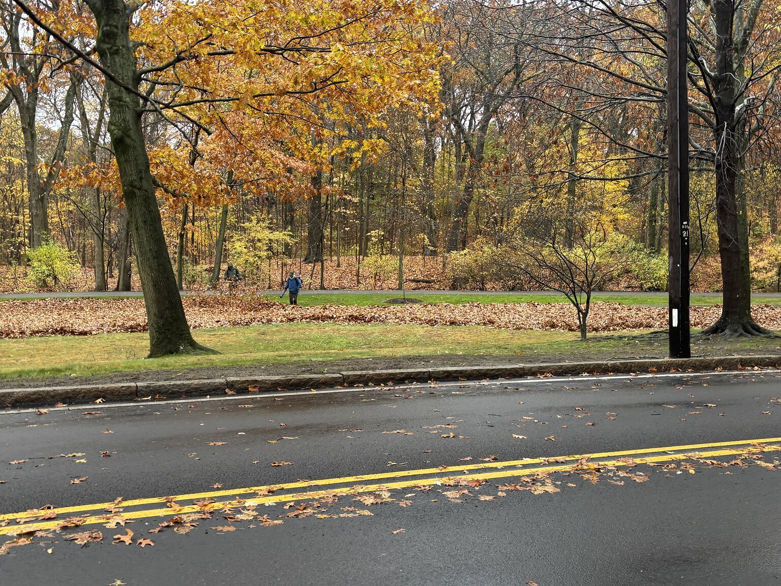 Worried about all the leaves in the GRASS but not cleaning up the sidewalk across the street