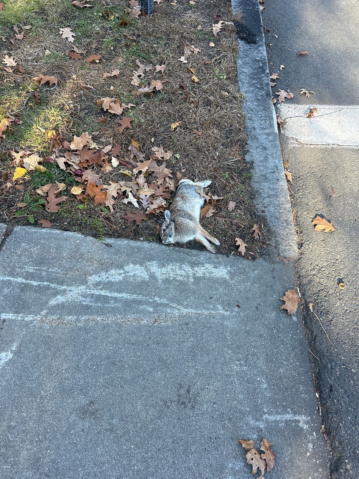 Dead rabbit at crosswalk on Lee Street