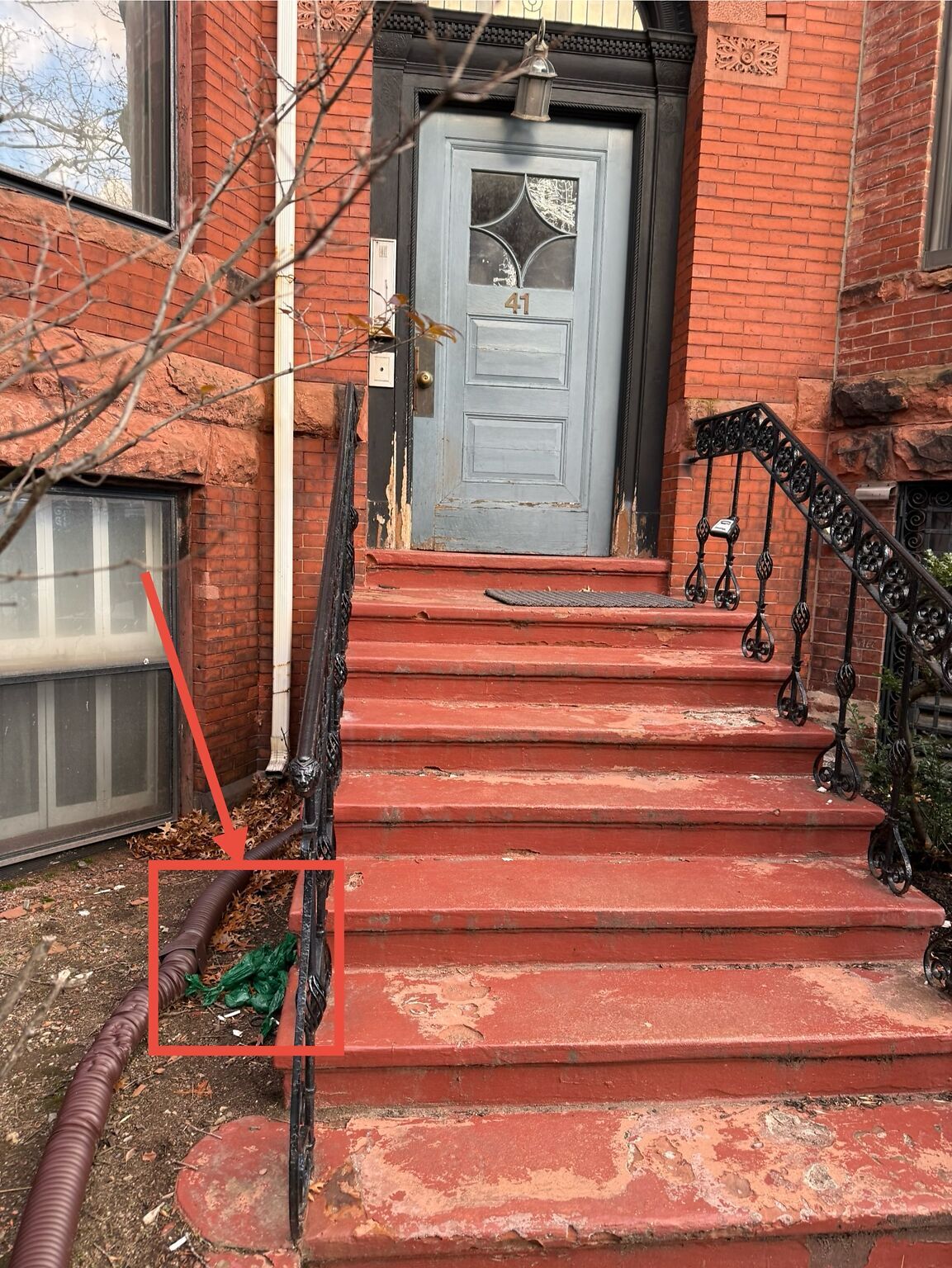 A resident of 41 Carlton Street (who always walks his small gray dog without a leash) has been leaving a pile of dog waste bags outside the front of the building.