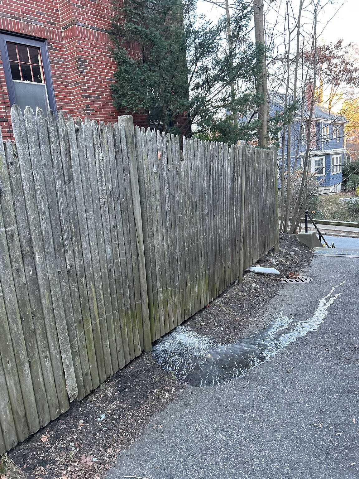 Neighbor dumps water onto the public path. This creates an icy condition that needs to be remediated.