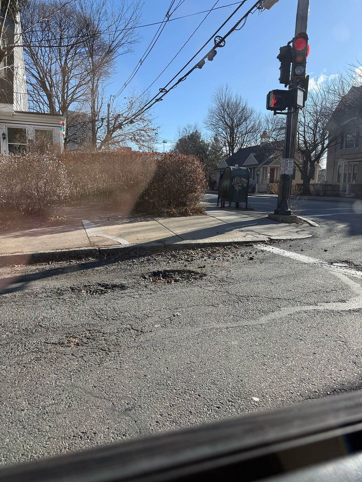 Big pothole on street near intersection