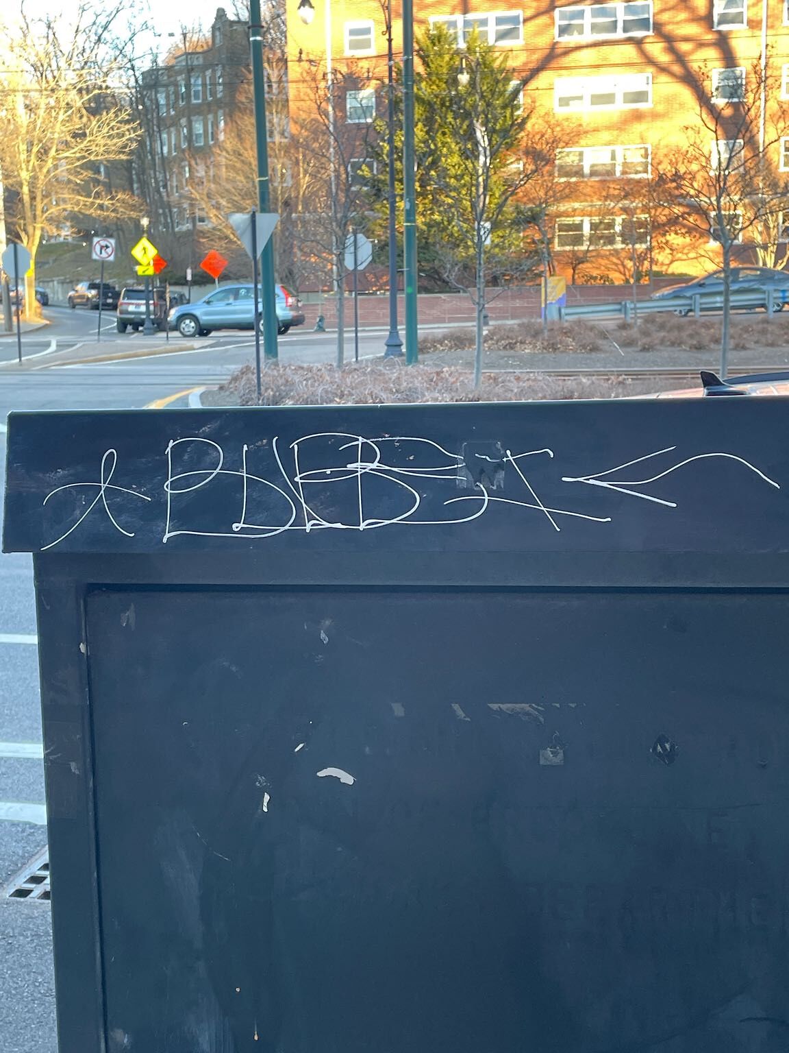 On black electrical box. Right outside/in front of 1601 Beacon Street