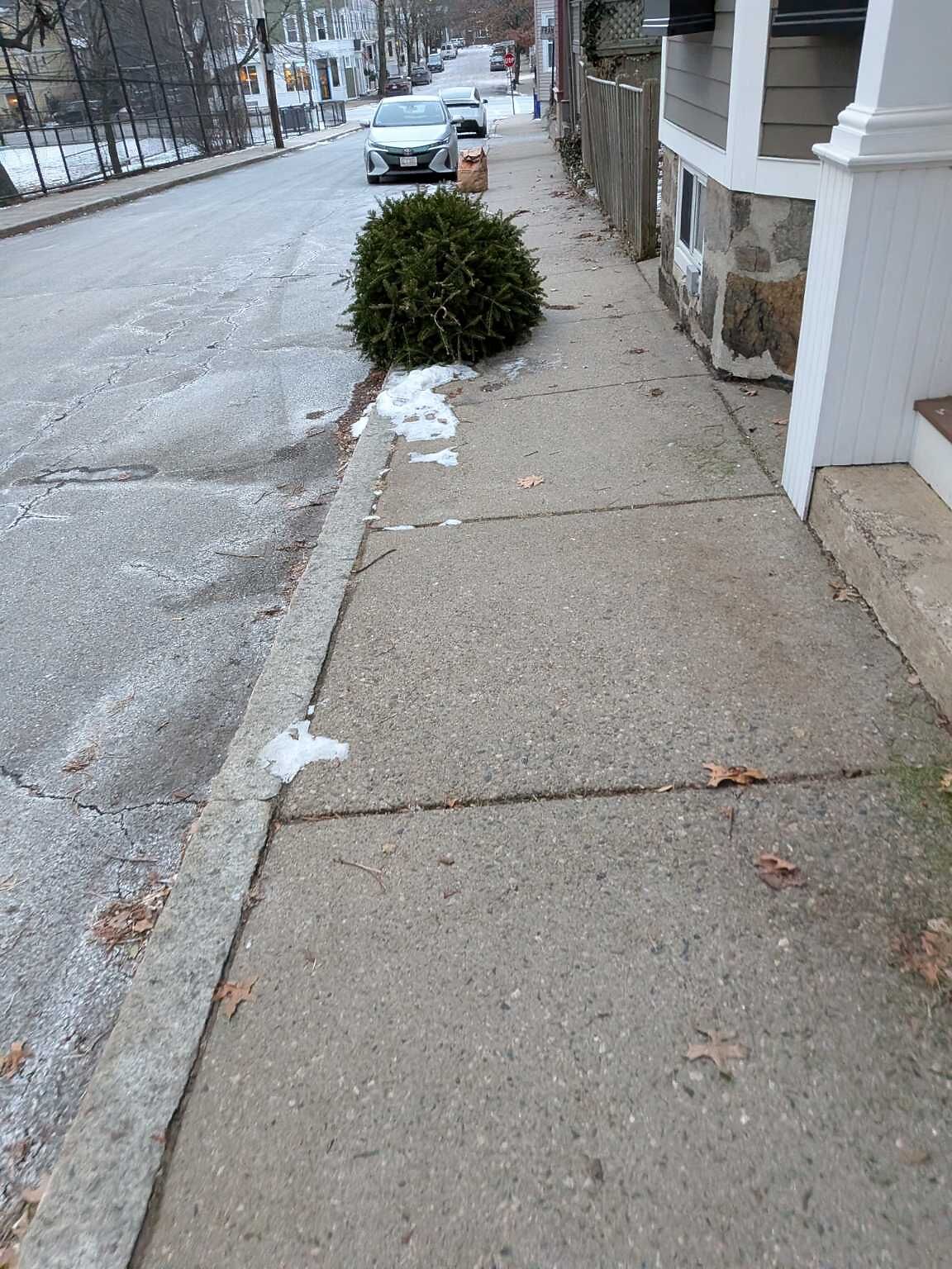 Christmas tree tossed out on Sunday, trash day is Friday. Nice job.