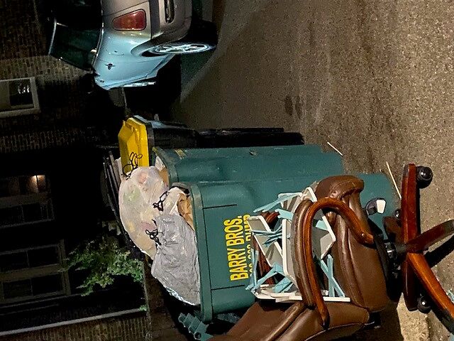 Uncovered trash behind 198 St. Paul St. Trash bags have holes in them where rats have been feeding.